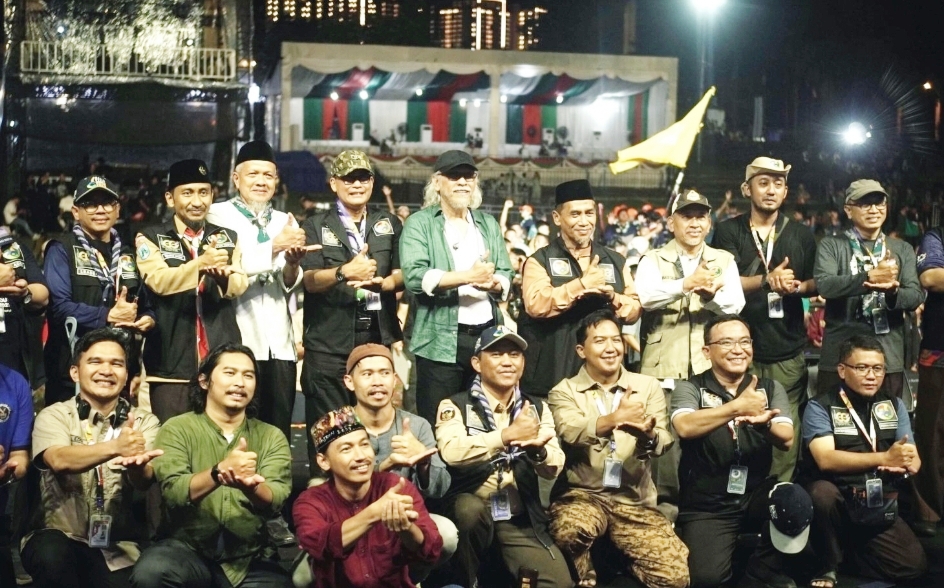 Jakarta, panjimas – Malam kedua di Bumi Perkemahan Cibubur itu terasa berbeda. Lampu panggung berpendar, layar LCD raksasa masih berdiri tegak menyaingi pepohonan, dan ribuan santri duduk rapi di lapangan utama. Dari luar pagar besi, penonton umum tetap bisa menyaksikan kilau panggung musik Iwan Fals meski hanya dari kejauhan.