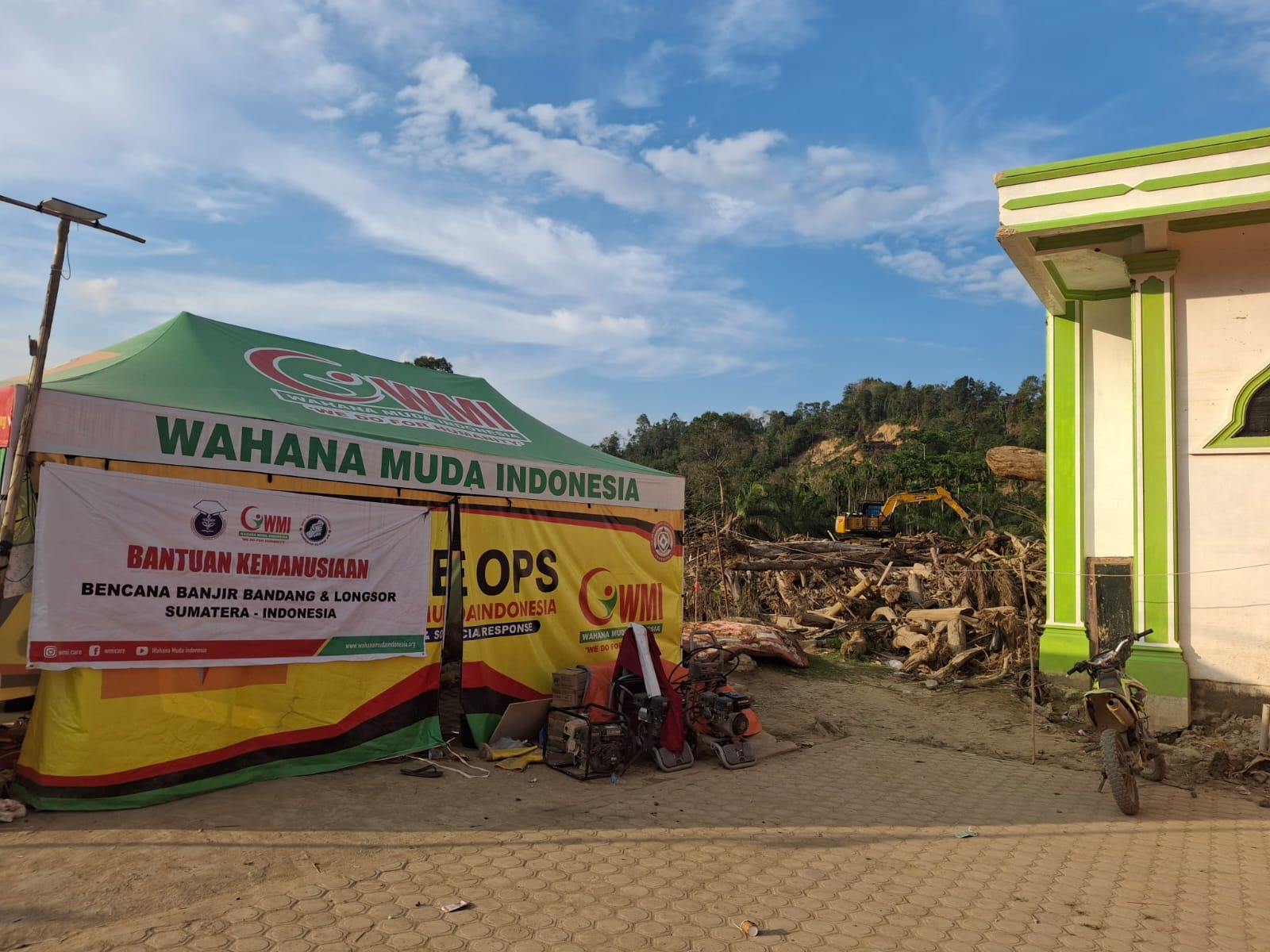 Sebelumnya hanya tenda milik organisasi relawan Wahana Muda Indonesia (WMI) karena saat pertama datang ke Lubuk Sidup, para relawan bersama warga setempat membersihkan dulu timbunan lumpur di dalam mesjid.